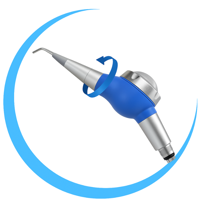 Additionally, it is easy to clean and maintain, with quick replacement of working heads or spray nozzles. It also connects easily to 2-hole high-speed hoses, making it compatible with most dental equipment. A complete solution for those seeking speed and quality in dental cleaning treatments.